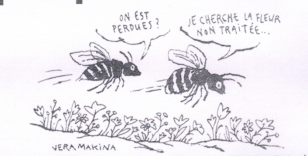 par une suite d'abeilles mortes, la pollution par les substances chimiques et