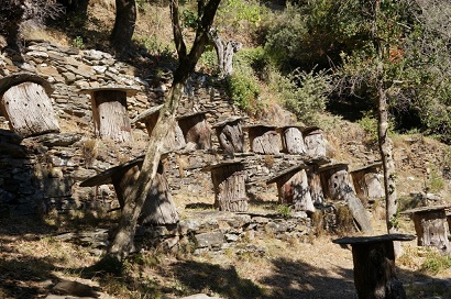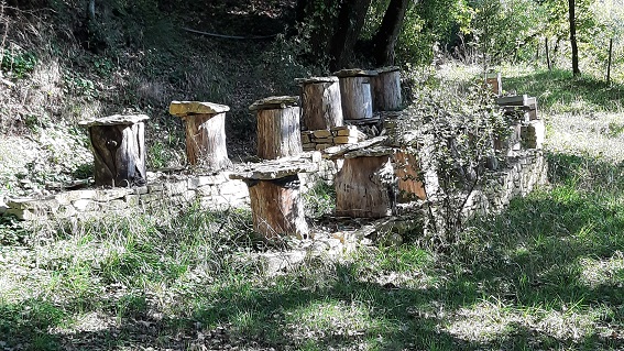 Une photo de ruchers dans les Cévennes au musée cévenol Maison Rouge à Saint-Jean du Gard (septembre 2020) :