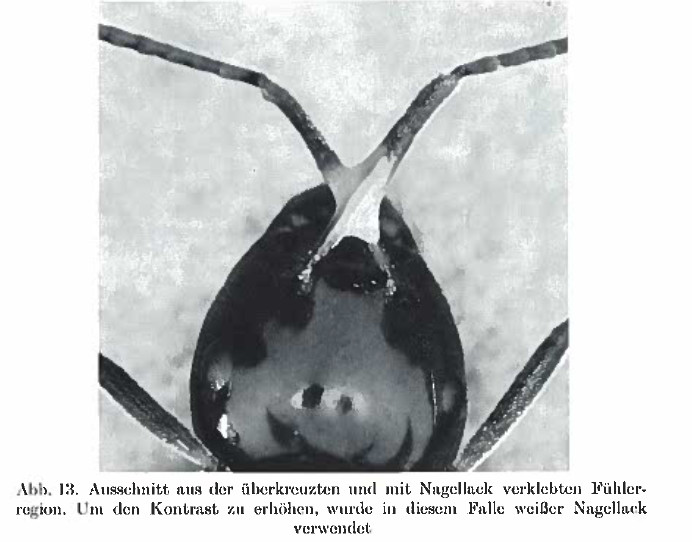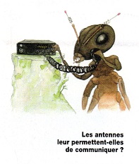 J'ai aussi coupé les tarses des pattes de fourmis pour voir si elles pouvaient encore communiquer et cela n'empêchait pas les trophallaxies, les antennes sont plus importantes (Lenoir 1972)
