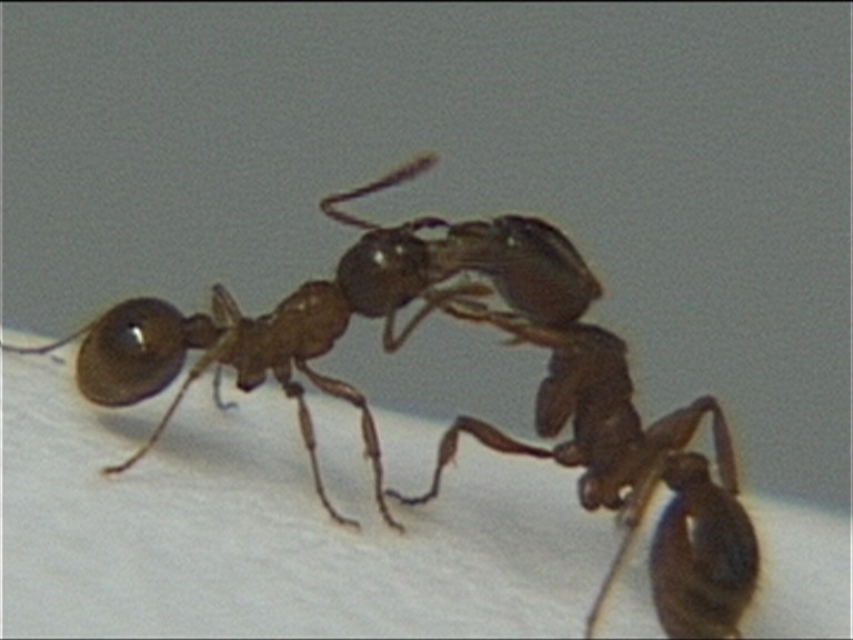 - On a souvent l'impression que les fourmis se parlent avec leurs antennes,