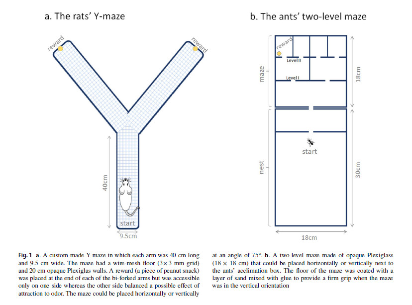 L'apprentissage chez les rats et les fourmis. Dans un labyrinthe en Y, les rats sont capables de transposer l'information acquise en horizontal vers du vertical et inversement, mais pas les fourmis Cataglyphis niger (Hagbi et al 2022).