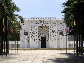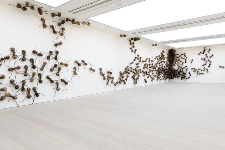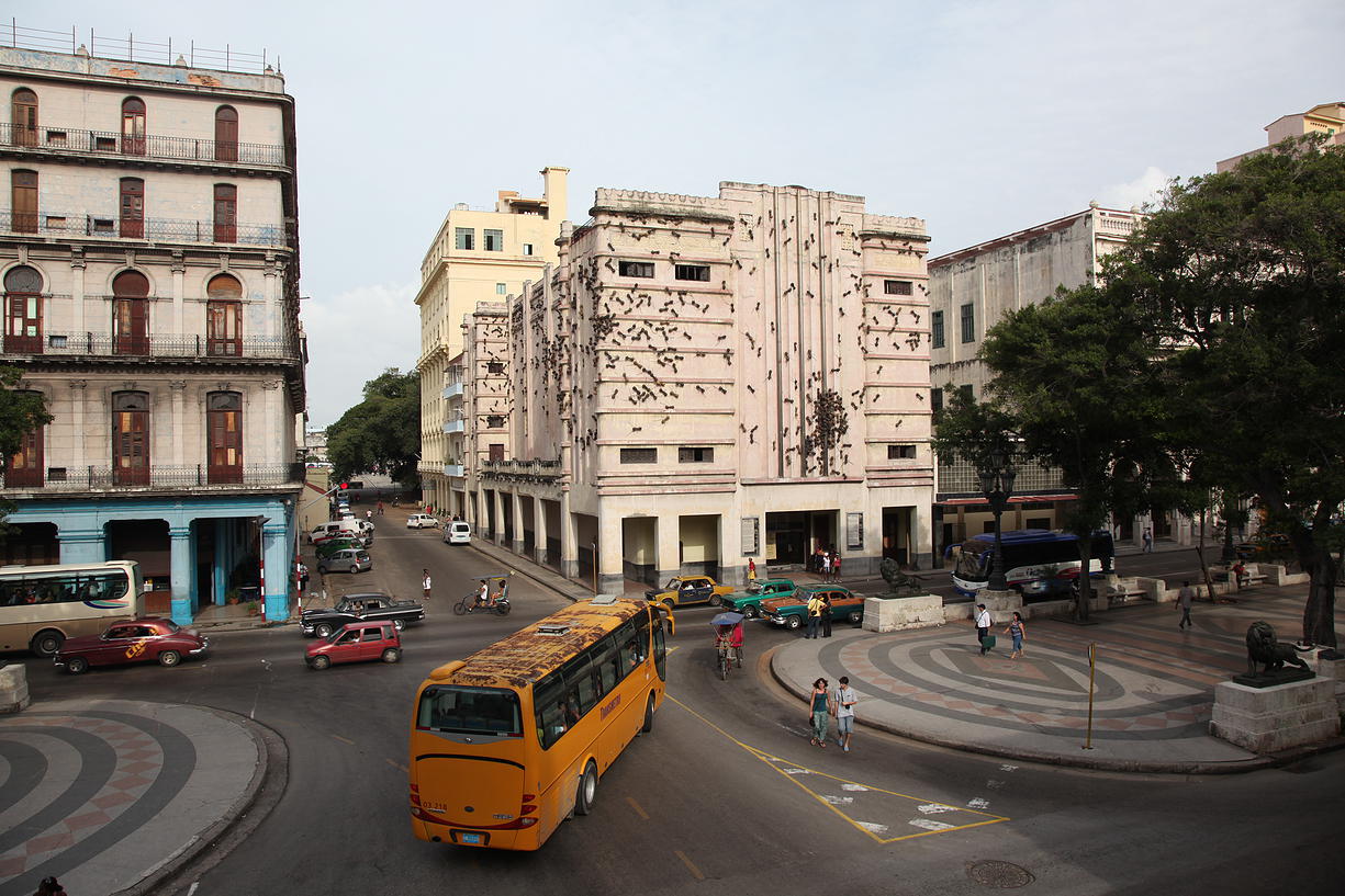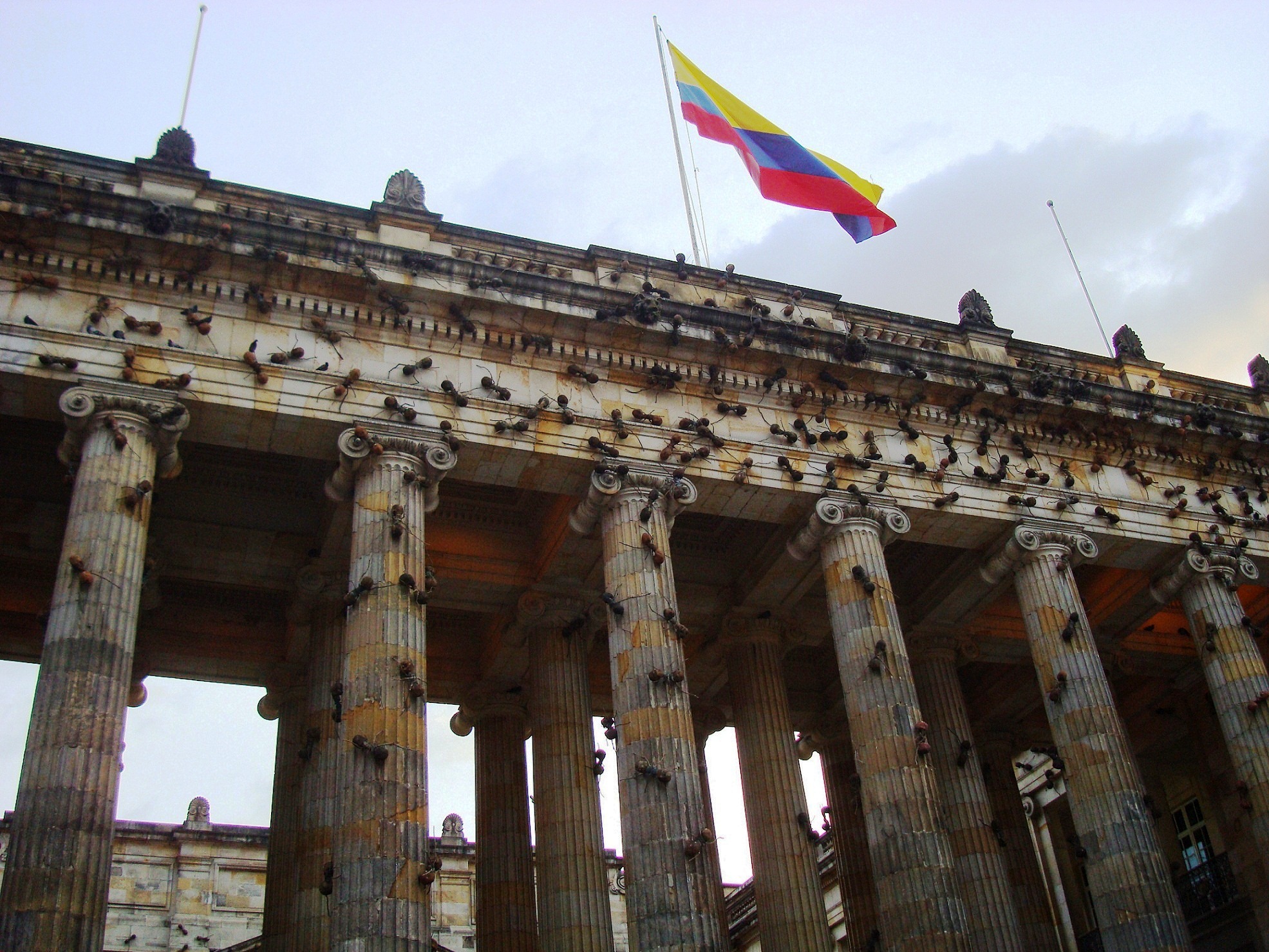 Le 16 février 2010, le travail "Ants", de l'artiste colombien Rafael Gomez Barros, couvre la façade du palais du Congrès National à Bogota. Selon l'auteur, les fourmis symbolisent les personnes déplacées déplacées mors du conflit armé en Colombie (AP Photo/Fernando Vergara)