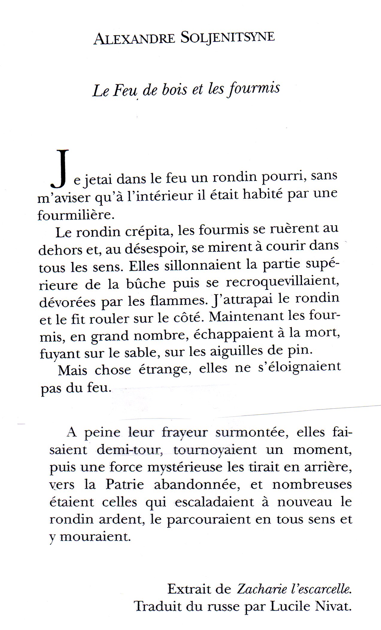 "Quand votre chemin croise celui d'une fourmi, rien ne s'oppose donc,