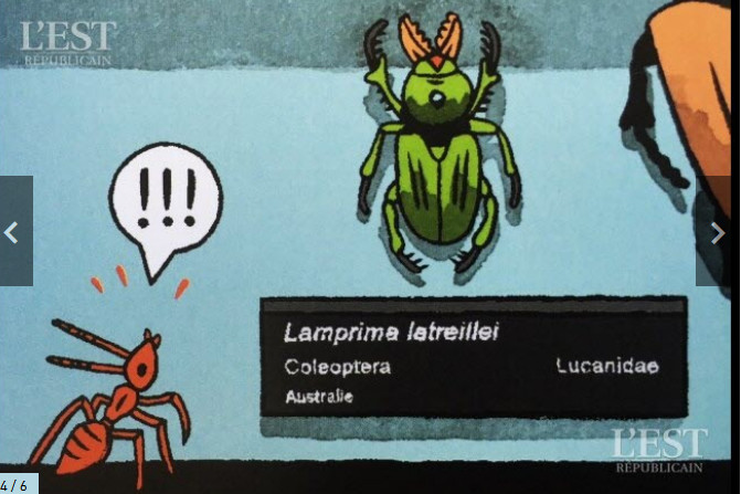 Dûment accompagnée. De deux petites fourmis rouges, très discrètes au départ, qui servent néanmoins de fil conducteur à toute l’histoire. "J’ai pas mal travaillé sur les fourmis dans ma vie. En plus je prépare une exposition au MAN, sur des textes de l’entomologiste Jean-Henri Fabre. Ces quelques planches s’inscrivent donc dans la continuité. Et puis je cherchais des visiteurs susceptibles de se faufiler discrètement dans les arcanes du lieu. Enfin, j’avais envie de jouer sur la différence d’échelle entre le grand et le tout petit."