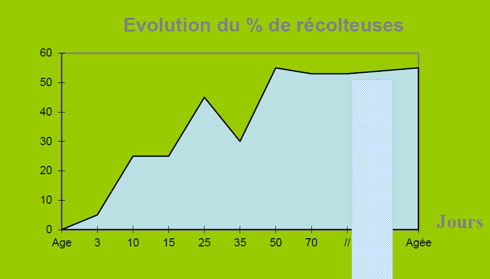 Entre deux, il y a une phase de transition, où les ouvrières oscillent