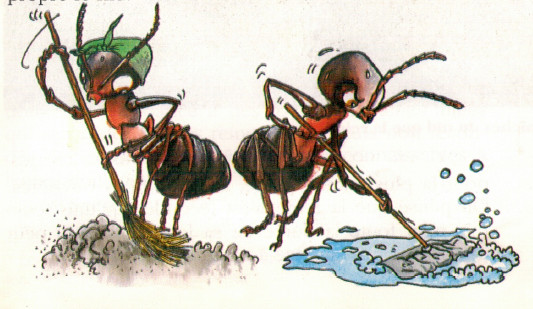 La répartition des tâches se fait en grande partie en fonction de l'âge : les plus vieilles ouvrières sortent progressivement vers l'entrée du nid puis deviennent exploratrices et fourageuses. Selon Laurent Keller les fourmis envoient les vieilles ouvrières à la guerre alors que c'est l'inverse chez les humains où l'on envoie les jeunes (Radio suisse du 3 janvier 2017). J'ai cependant montré que ce n'est pas une règle absolue. En laboratoire, il existe de nombreuses fourmis inactives qui passent la quasi-totalité de leur vie inactives. 50% des vieilles ouvrières restent dans le nid. Même si c'est exagéré dans des conditions de labo sans prédation, cela est sans doute valable (Lenoir 1979). Chez l'abeille le passage d'une catégorie à l'autre (par exemple nourrice - butineuse) s'effectue sous le contrôle d'hormones avec une réversion possible en fonction des besoins de la ruche (Regert 2019 - Pdf)