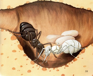 Les jeunes ouvrièes sont dépigmentées, très claire comme dans Le cycle de vie de la fourmi :