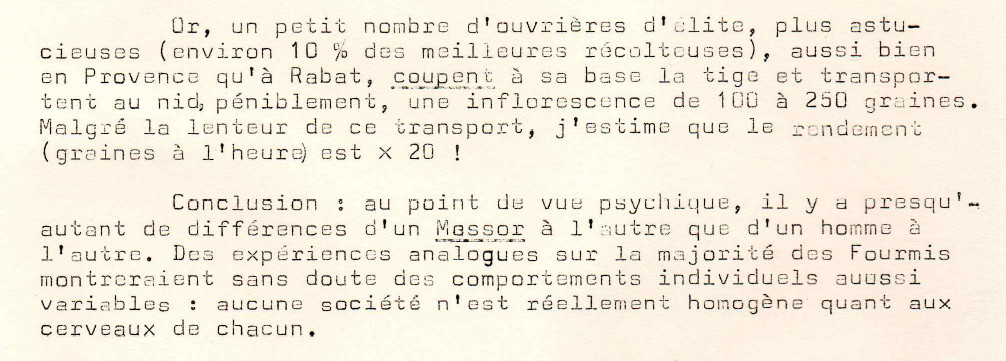 Dans une conférence Francis Bernard en 1971 parle des fourmis "élites :