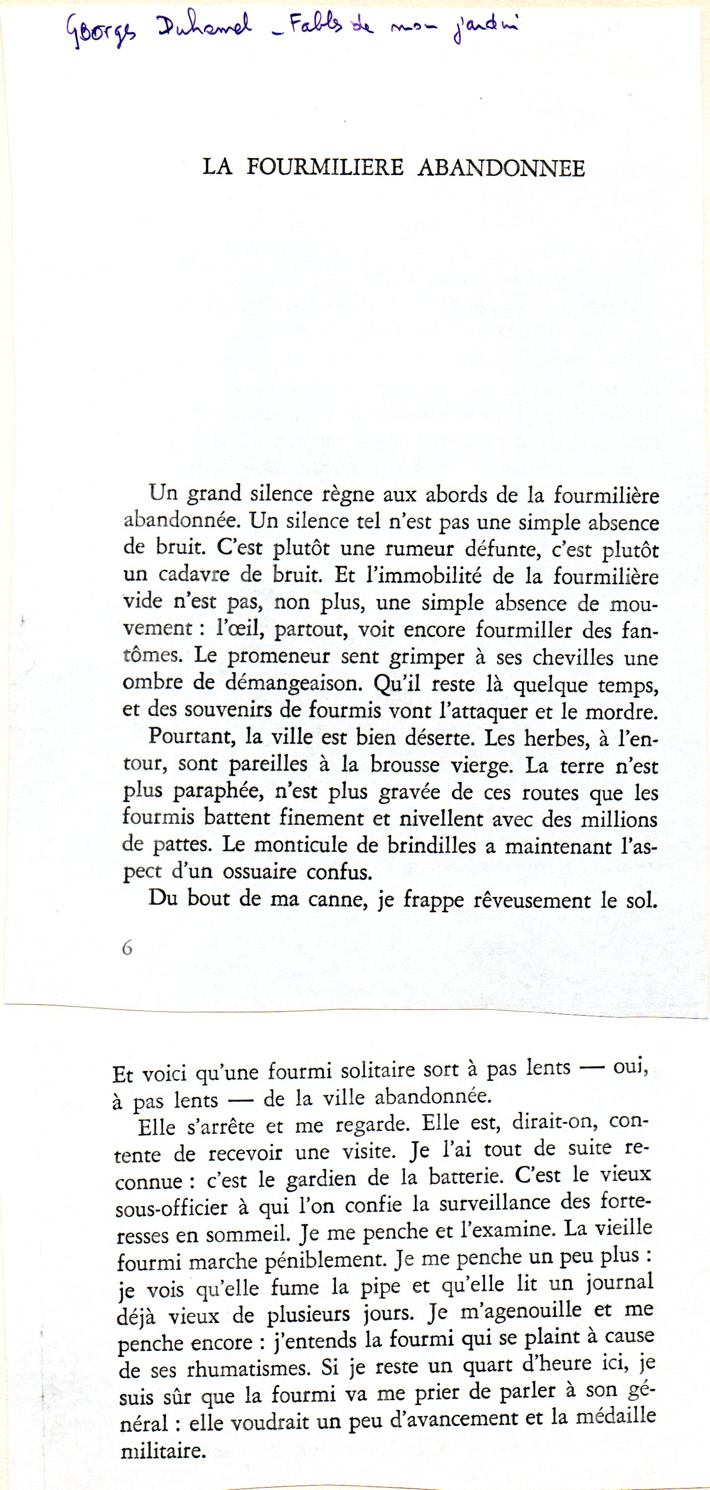 Dans les "Fables de mon jardin", un essai sous forme de récit de Georges Duhamel (Mercure de France en 1936)