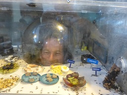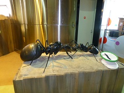 Avec des fourmis qui vivent en colonies dans une vraie fourmilière pour comprendre son organisation. Voir Guichard (1989) : "La Mégalopolis des fourmis", grande fourmilière vivante présentée au Musée des Sciences et Techniques de La Villette ... Une réussite totale!".