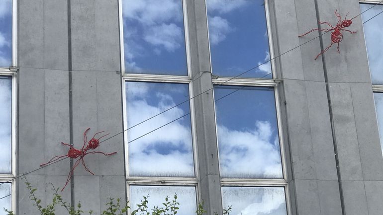 partir d’un fil de fer d’un rouge vif tranchent sur les façades
