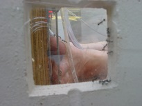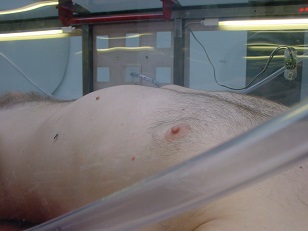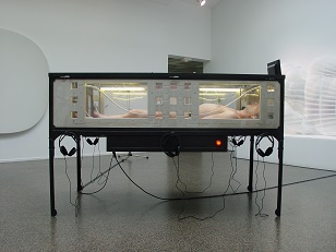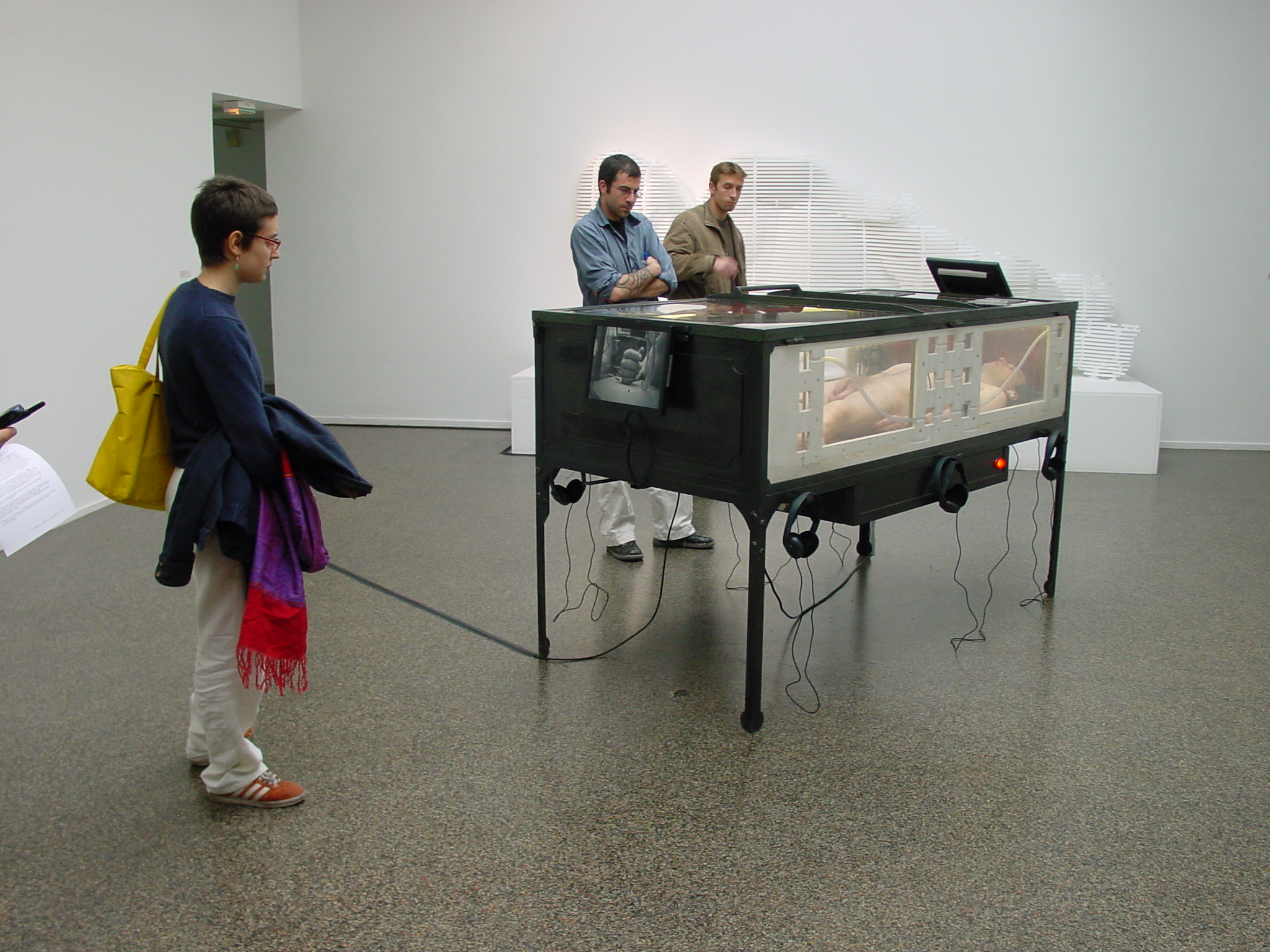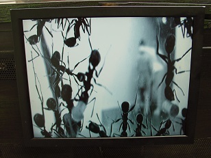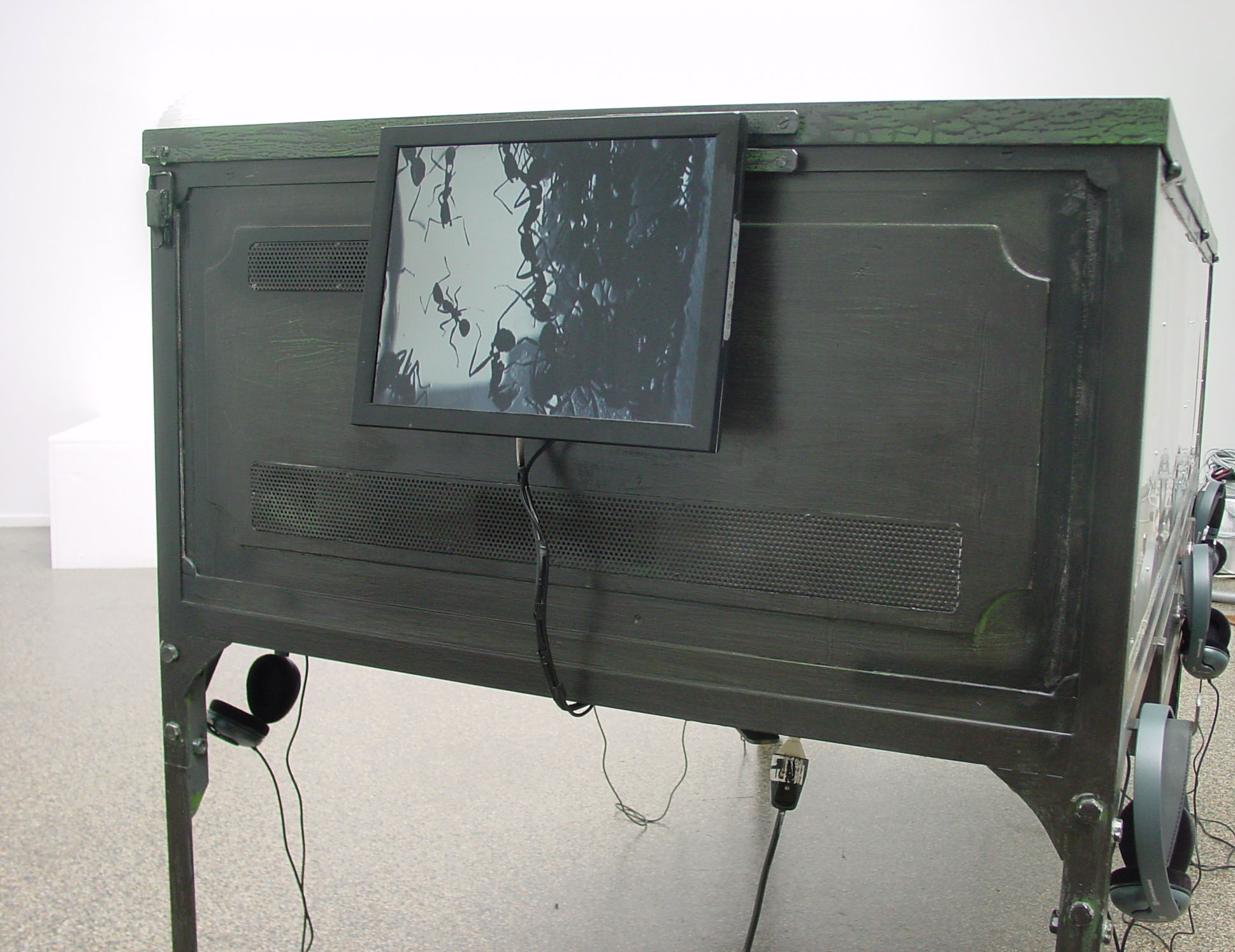 Un artiste s'exposse dans un coffre avec des fourmis Aphaenogaster senilis qui ne piquent pas en 2003 à Paris