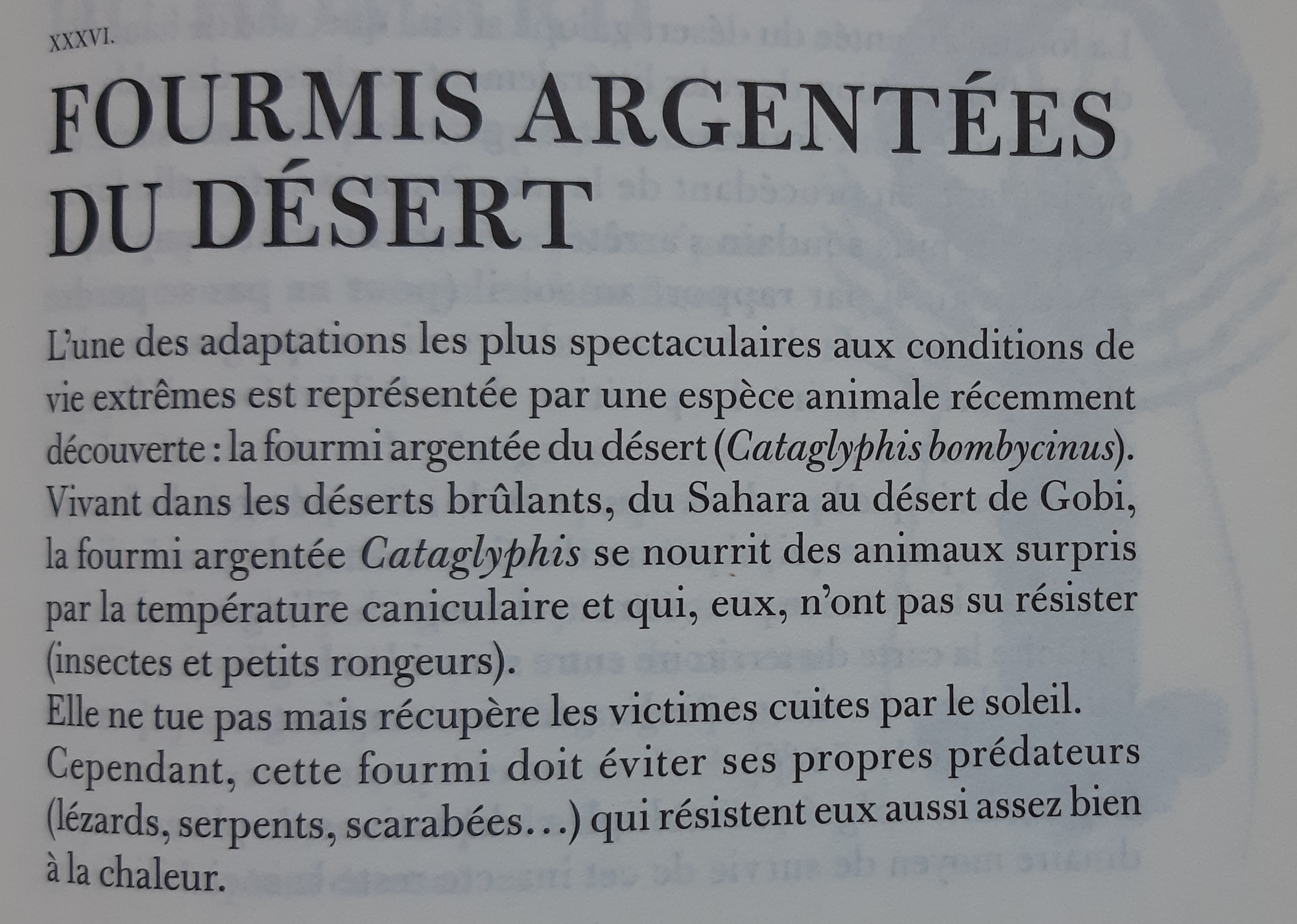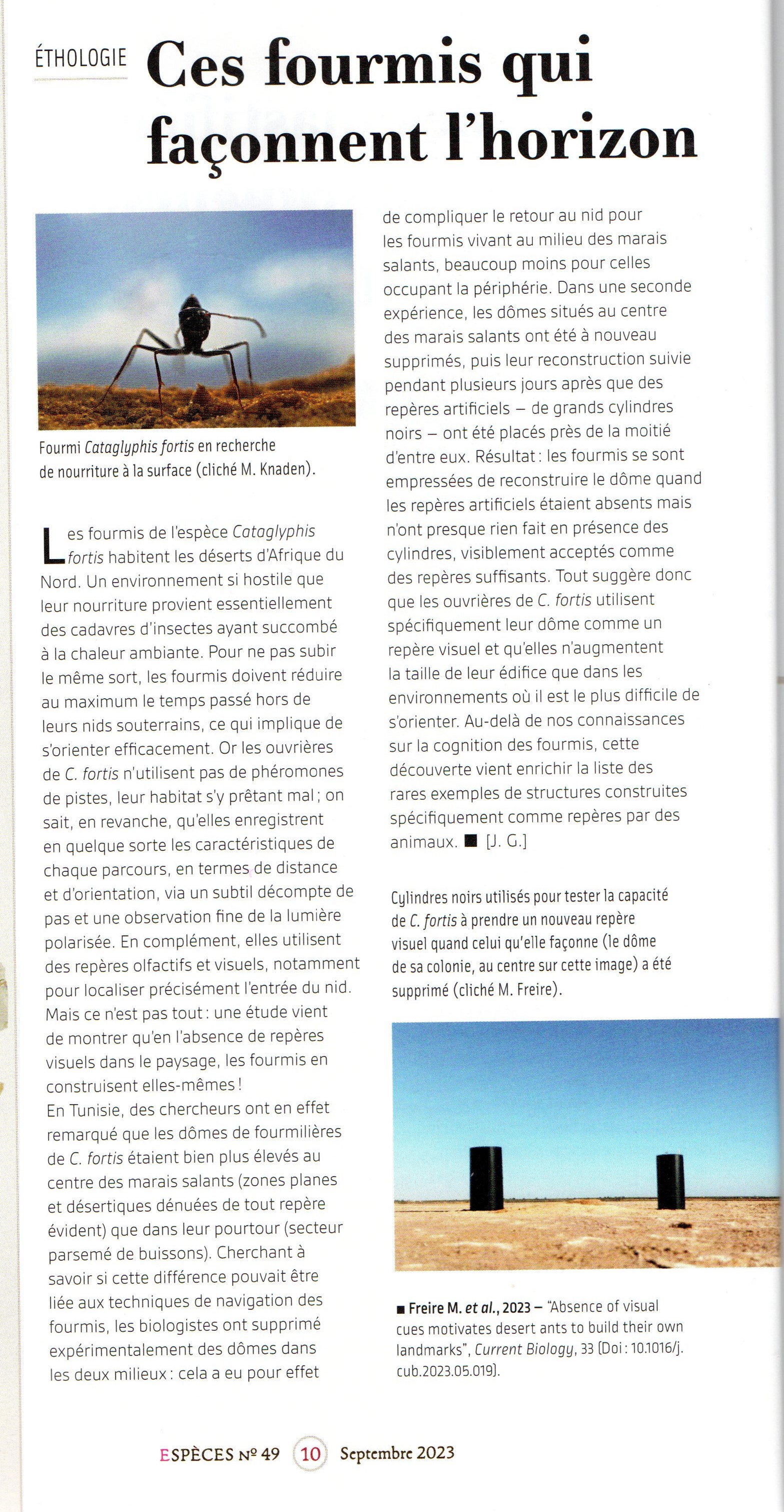 Voir tout sur les Cataglyphis dans L'Odyssée des fourmis, par Audrey Dussutour et Antoine Wystrach (2022) (p.73, 193, 178)