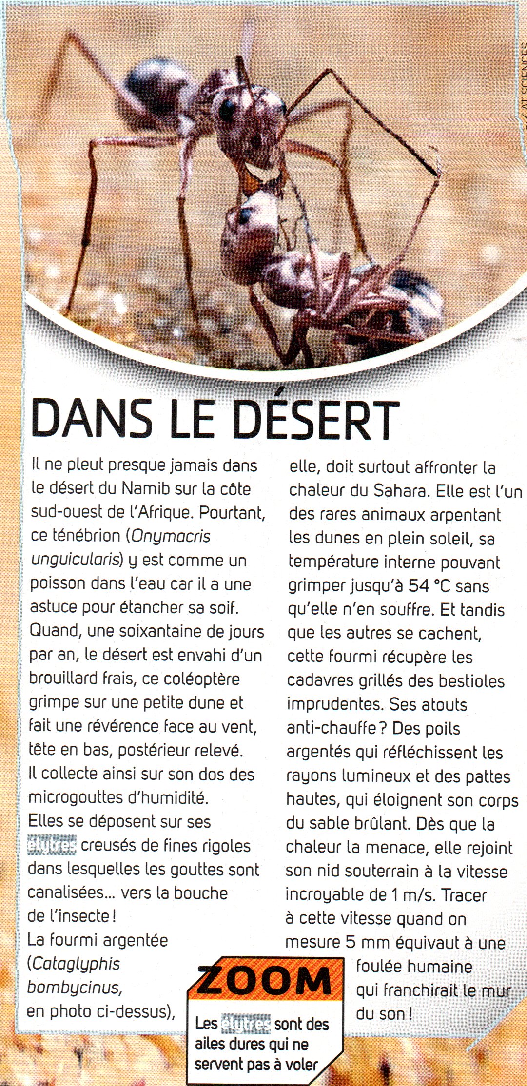 - Le Monde (2015) Une fourmi saharienne au frais gâce à ses poils.