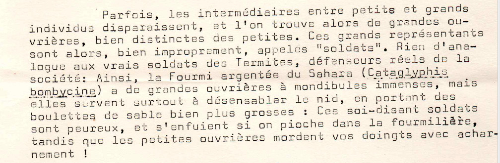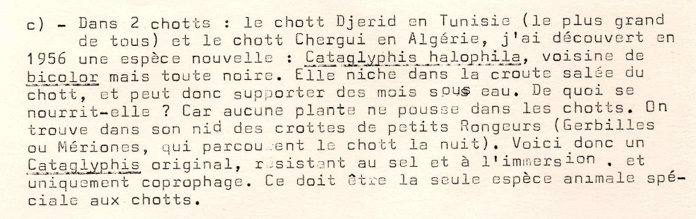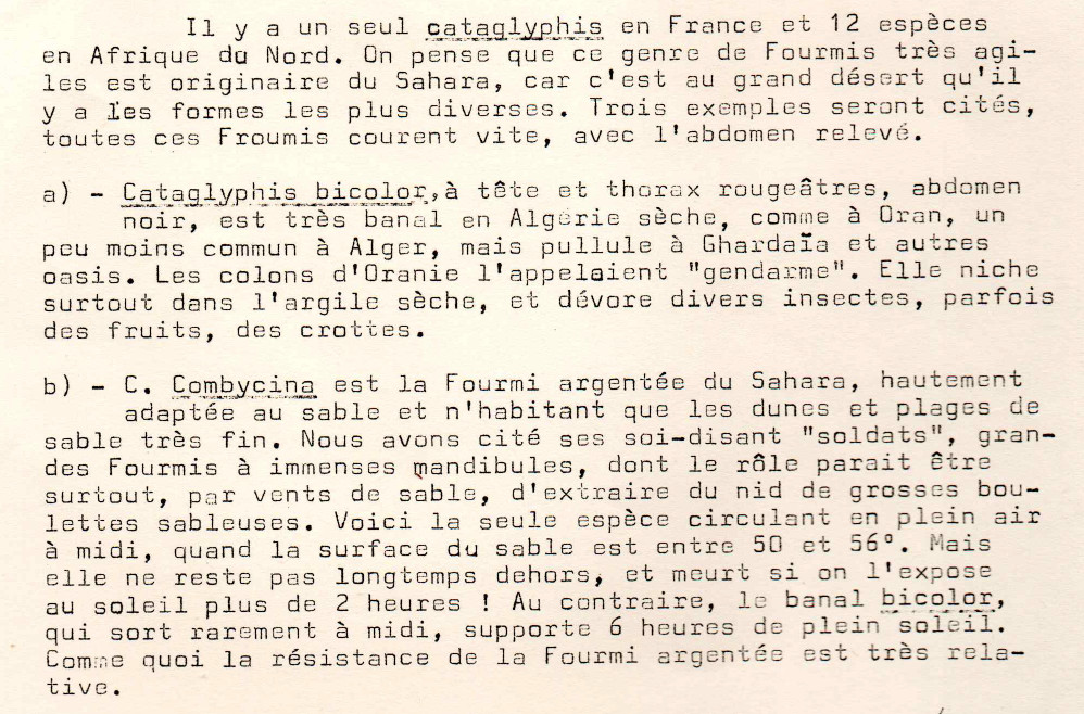 Les Cataglyphis selon Francis Bernard en 1971 :