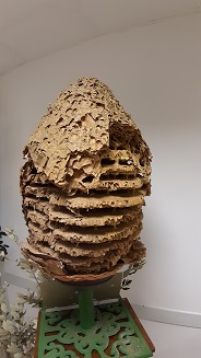 Dominique Crousier, un amateur passionné, à Sauvagnon près de Pau le 17 novembre 2022. Exposition et discussion. Tout sur le frelon. Comment détecter les nids au début du printemps. Surtout ne pas utiliser les pièges en bouteille en dehors de la période de recherche d'emplacements par les fondatrices en février, car ces pièges détruisent trop d'autres insectes, y compris le frelon européen.
