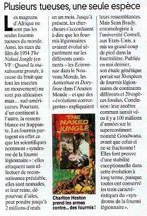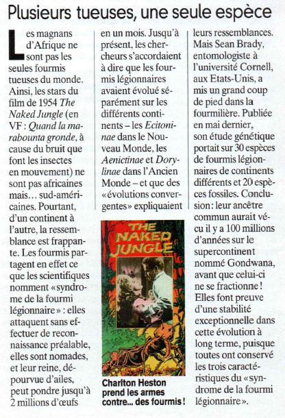 Le film cité dans "Fourmi magnan, l'exterminatrice", ça m'Intéresse n° 271, septembre 2003, p. 68-75. Reportage photo de Patrick Landmann à Lamto (Côte d'Ivoire), texte Danielle McCaffrey :
