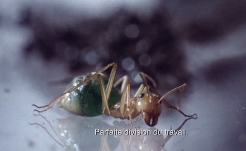 empruntés au documentaire animalier en macrophotographie (la scène