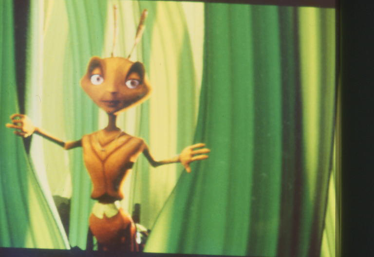 Insectopia. Seul rescapé du casse-pipe, notre trublion en proie à des états d'âme (évidemment vocalisé par Woody Allen) ajoute sa verve dans la version originale. Un tonus renforcé par les babils de Sharon Stone (Bala la belle), Gene Hackman (le mégalo Mandibule), les troufions Sylvester Stallone, Danny Glover, le psy Paul Mazursky... tous métamorphosés en imagerie de synthèse, un standard teinté terre de Sienne, déclinable à l'infini (innombrable figuration), conforme à l'unanimisme de cette fable entomologique comportant quelques spectaculaires morceaux de bravoure. Le séjour paradisiaque à Insectopia (dépotoir bariolé) n'est pas non plus sans péril, enjambé par des bipèdes aux redoutables tatanes. Les bestioles qui ne périssent pas écrabouillées (enrobées dans un chewing-gum en guise de linceul) peuvent être trimbalées au diable vauvert, incrustées dans les striures d'une semelle.