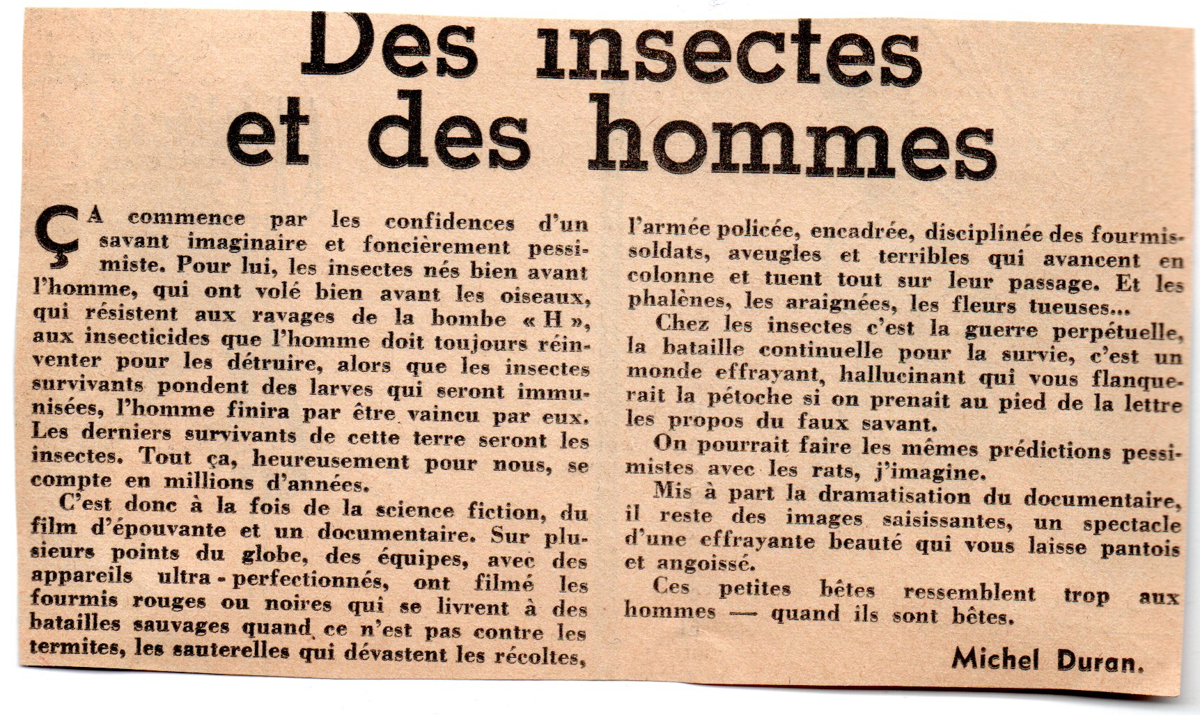 pessimiste. Pour lui, les insectes nés bien avant l'homme, qui ont volé