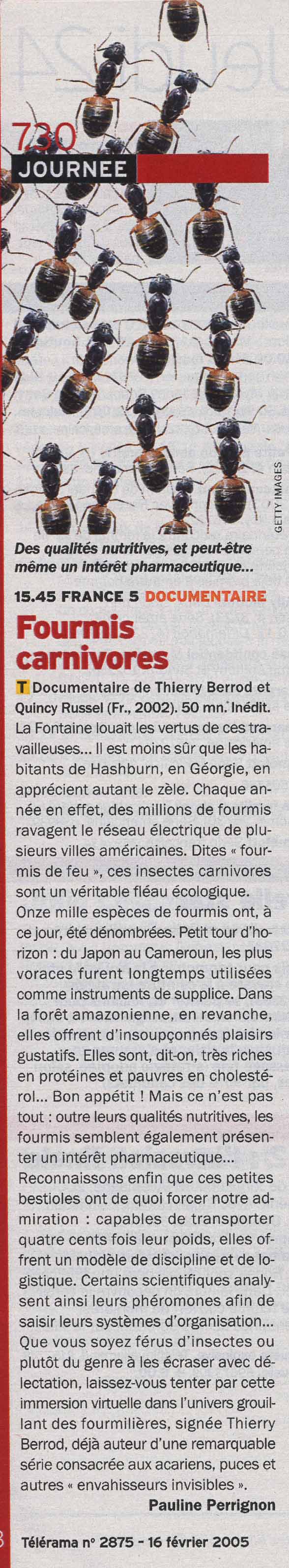 cher. Agressives et carnivores, elles peuvent piquer huit fois. Les fourmis