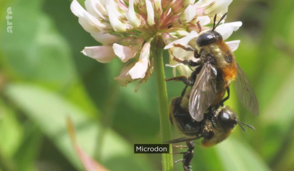 (syrphes qui ressemblent à des abeilles) pondent leurs oeufs à