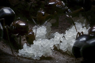 Les oeufs contaminés qui sont enduits de salive pour les protéger