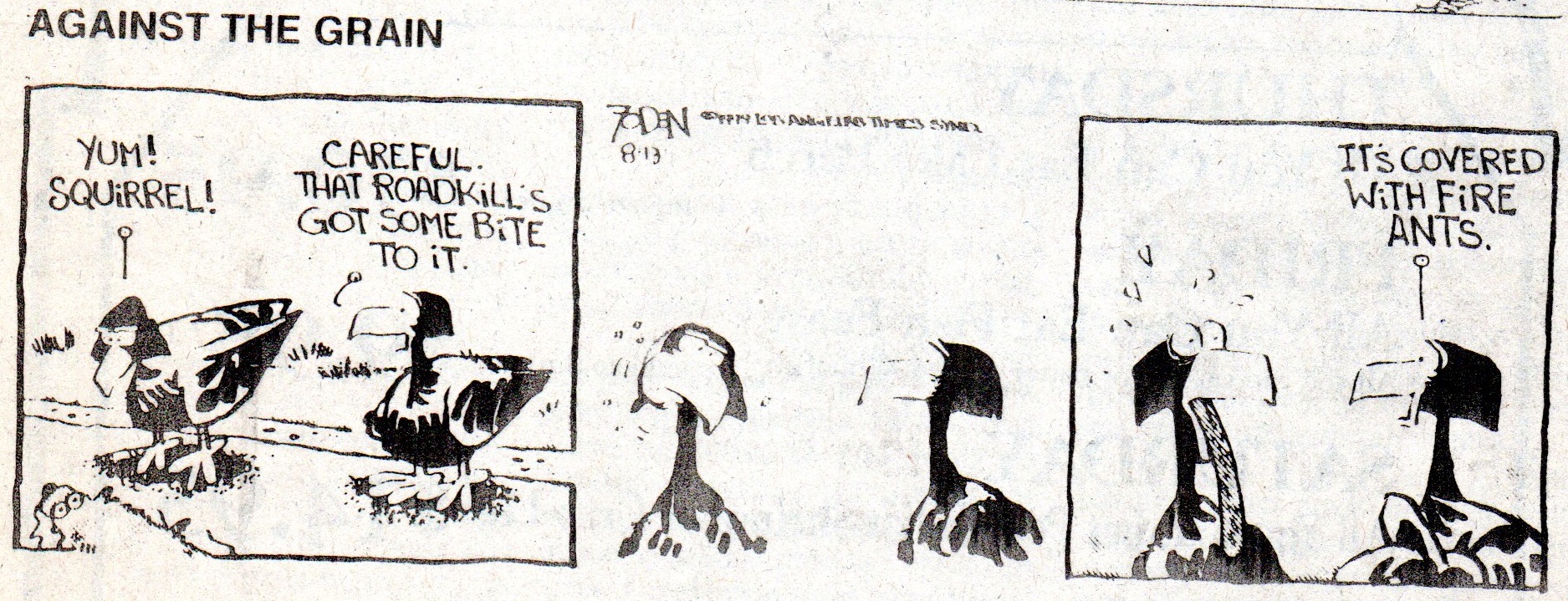 La fourmi de feu dans les dessins américains : Against the grain (Cheboygan Daily Tribune - 13-15 août 1999).