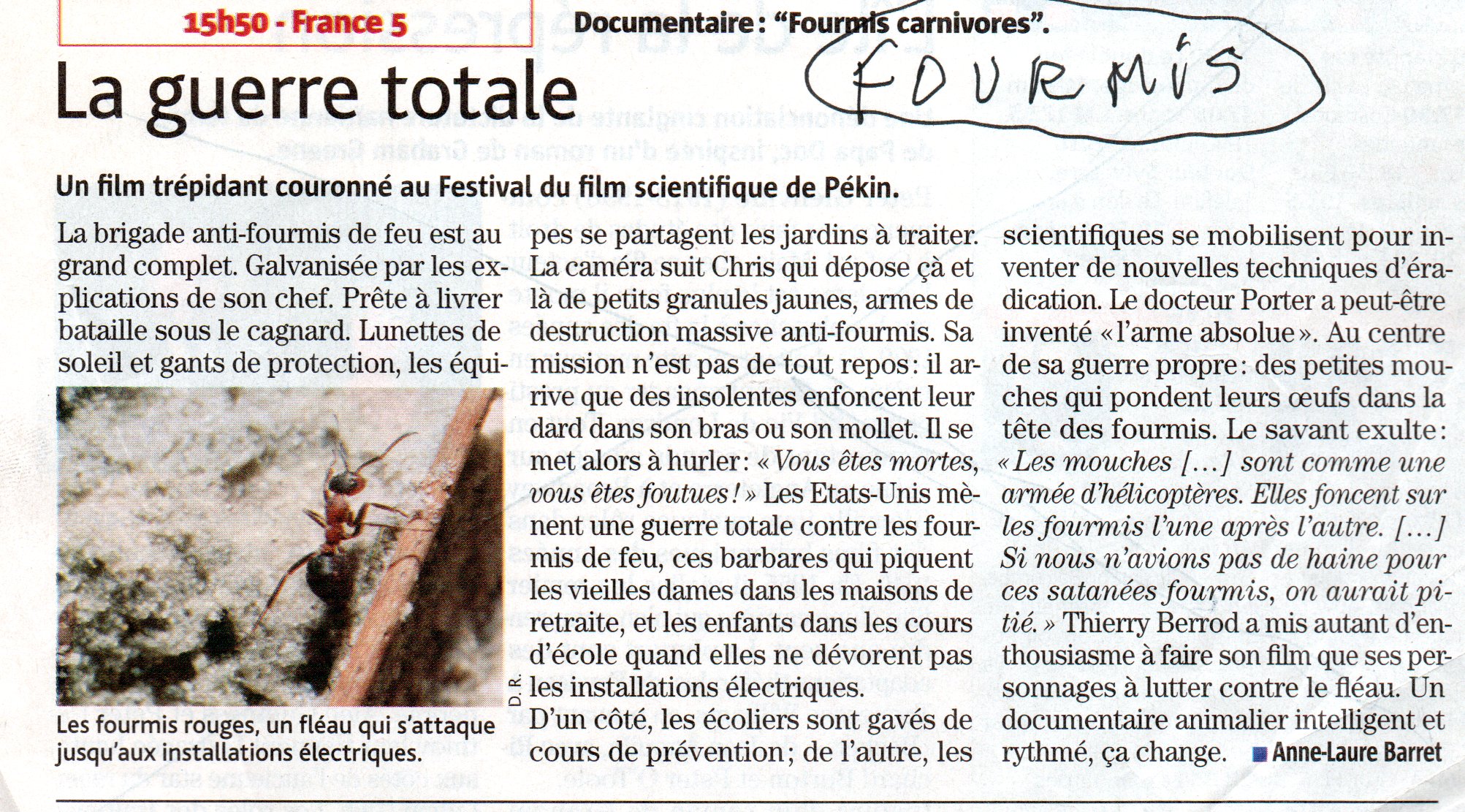 Berrod, 31 août 2004, 52 min. La guerre contre la fourmi de feu aux Etats-Unis,