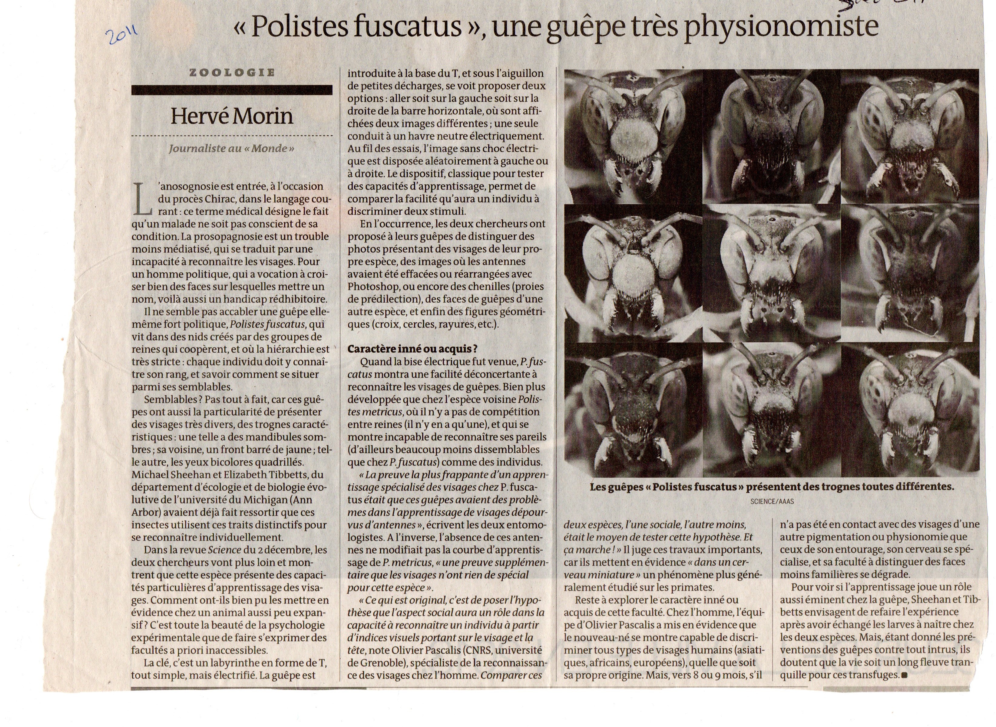 À (re)lire : Polistes fuscatus, une guêpe très physionomiste.