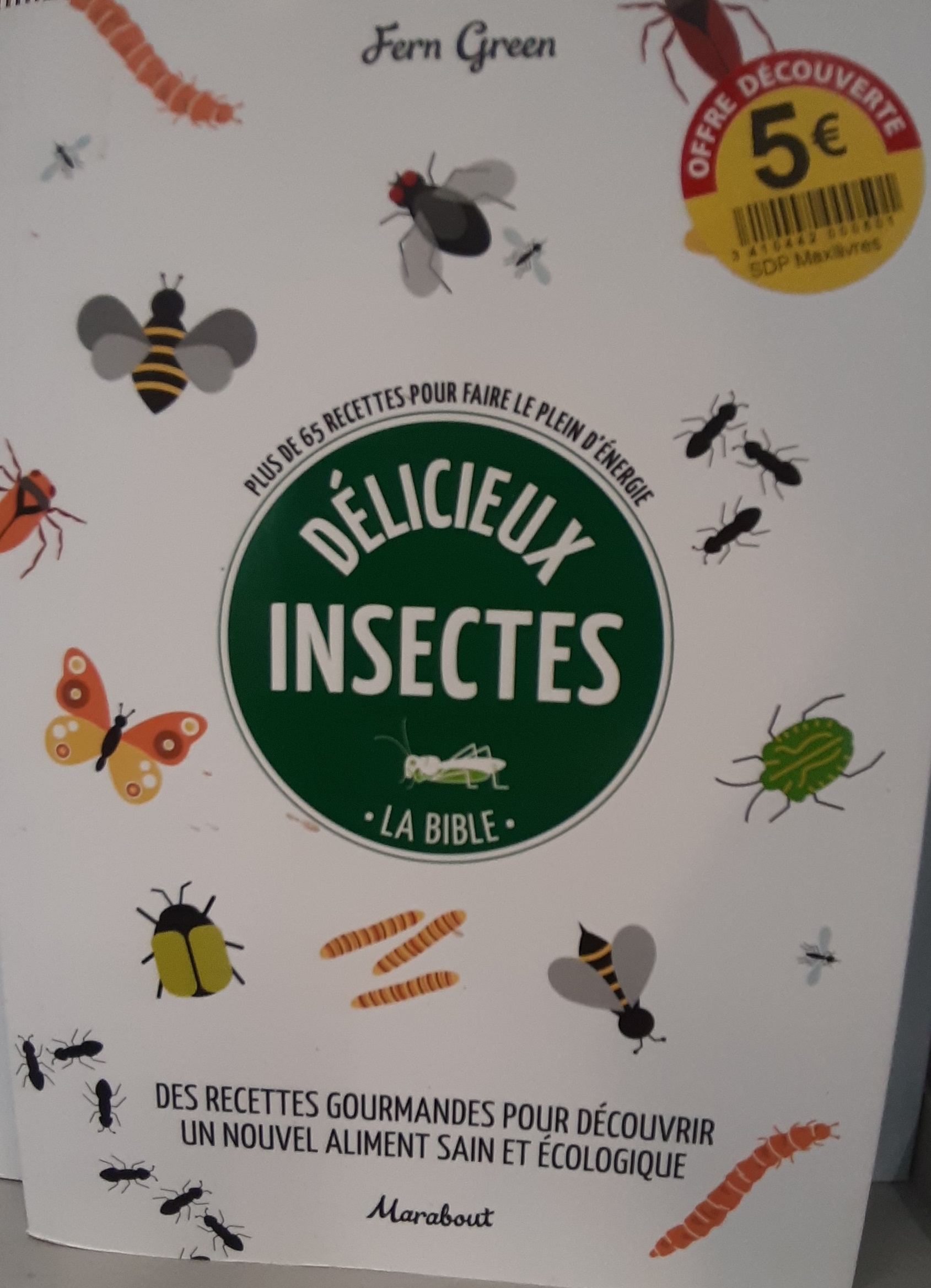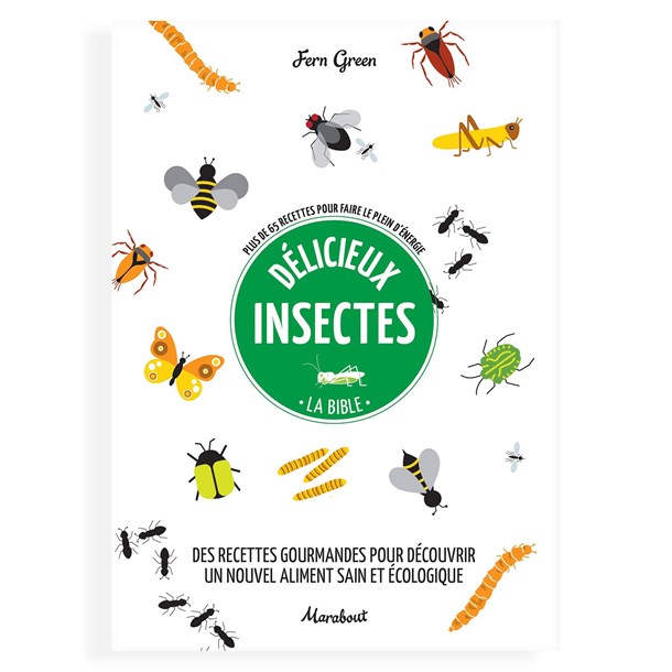Délicieux Insectes de Fern Green, Marabout 2019. 65 recettes de fruits et légumes parfumés avec des insectes, surtout des ténébrions, quelques unes avec des fourmis noires (sans doute Polyrachis).