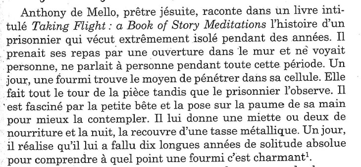 - La sagesse et l'ingéniosité des fourmis (p.143-46) : Anthony