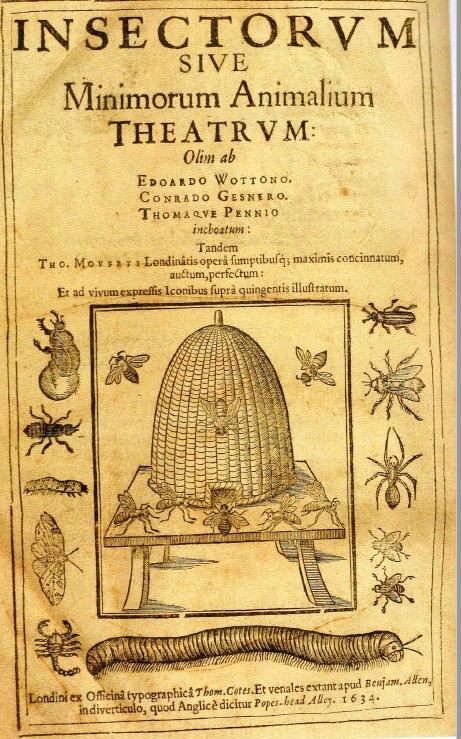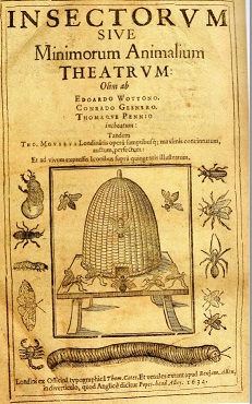 Theatrum insectorum de Thomas Moffet 1658, avec une fourmis devant la ruche