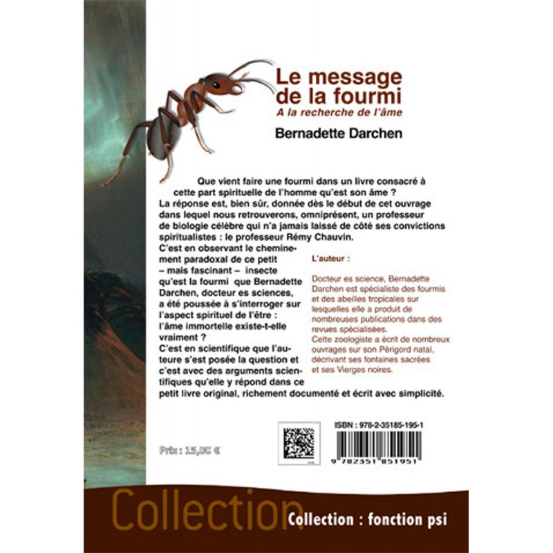 Ce livre ne parle pas de fourmis mais de la recherche de l'âme, des médiums, sauf dans l'introduction "Pourquoi ce titre ?". B. Darchen, dite la Fourmi, cite Rémy Chauvin qui a été son parrain de thèse. La médium entre en contact avec Chauvin et à la fin de la communication, une fourmi se promène dans la pièce.. B. Darchen parle des fourmi-apparitions, elle envoie le livre à son neveu qui voit une fourmi sur le livre.. Voir Pourquoi ce titre ?