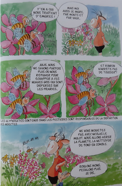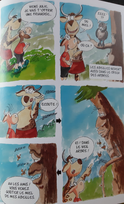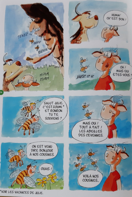 De Bruno Doutremer, éd Amiver (2019). Julie, une vache originale qui parle et se déplace beaucoup. Cette fois elle part sur les traces d'un animal étrange, le dahu (voir Fourmilière dahu). Elle a l'occasion de gouter du miel dans une colonie d'abeilles sauvages. Elle rencontre deux abeilles des Cévennes qui fuient la pollution, mais heureusement Nicolas Le Mulot va sauver la planète.