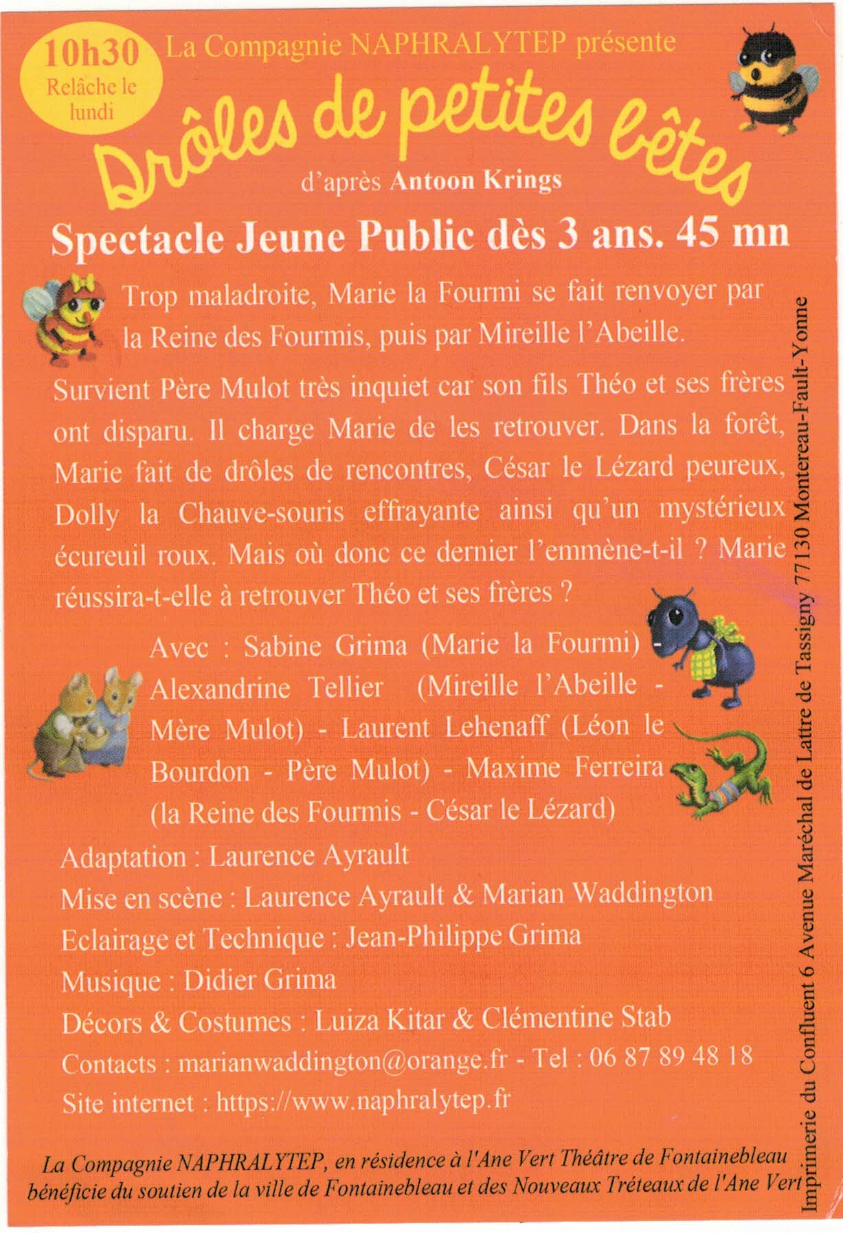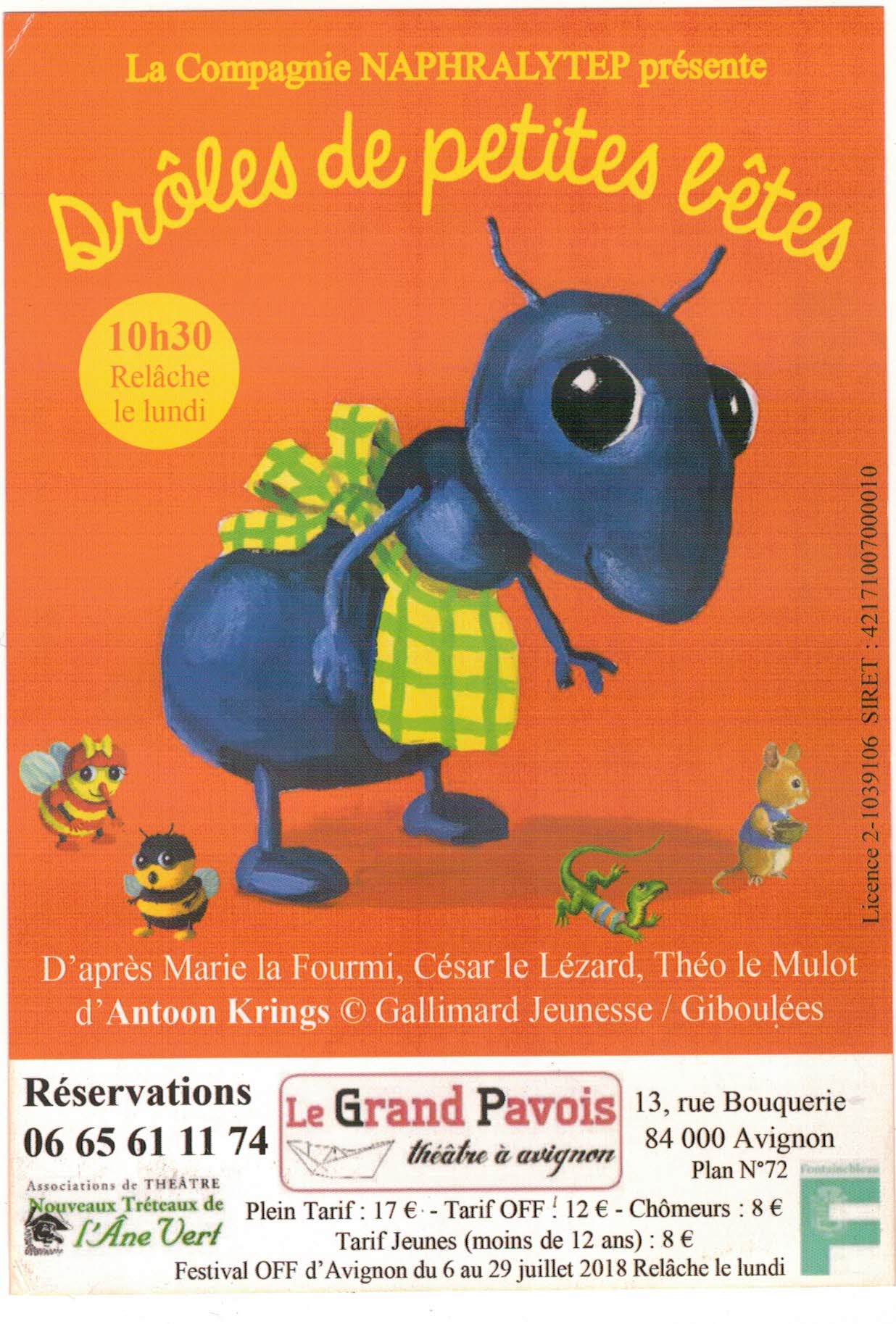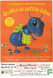 La compagnie de théatre Naphralytep a joué Marie la fourmi à Avignon en 2018 (voir Spectacles) :