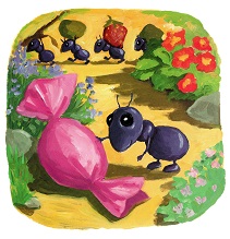 Marie a du mal à effectuer son travail et elle est renvoyée par la reine des fourmis. Elle rencontre Mireille l'abeille et Léon le bourdon, mais ne reste pas chez eux. Elle finit dans une fleur "dans un bonheur parfait."