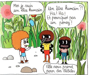 Pati en a marre du monde des grands. Un site internet lui permet d'accéder au monde des petits où elle découvre des insectes pas très sympathiques, puis elle tombe dans une fourmilière. Hélas des dessins de fourmis bizarres avec une trompe..