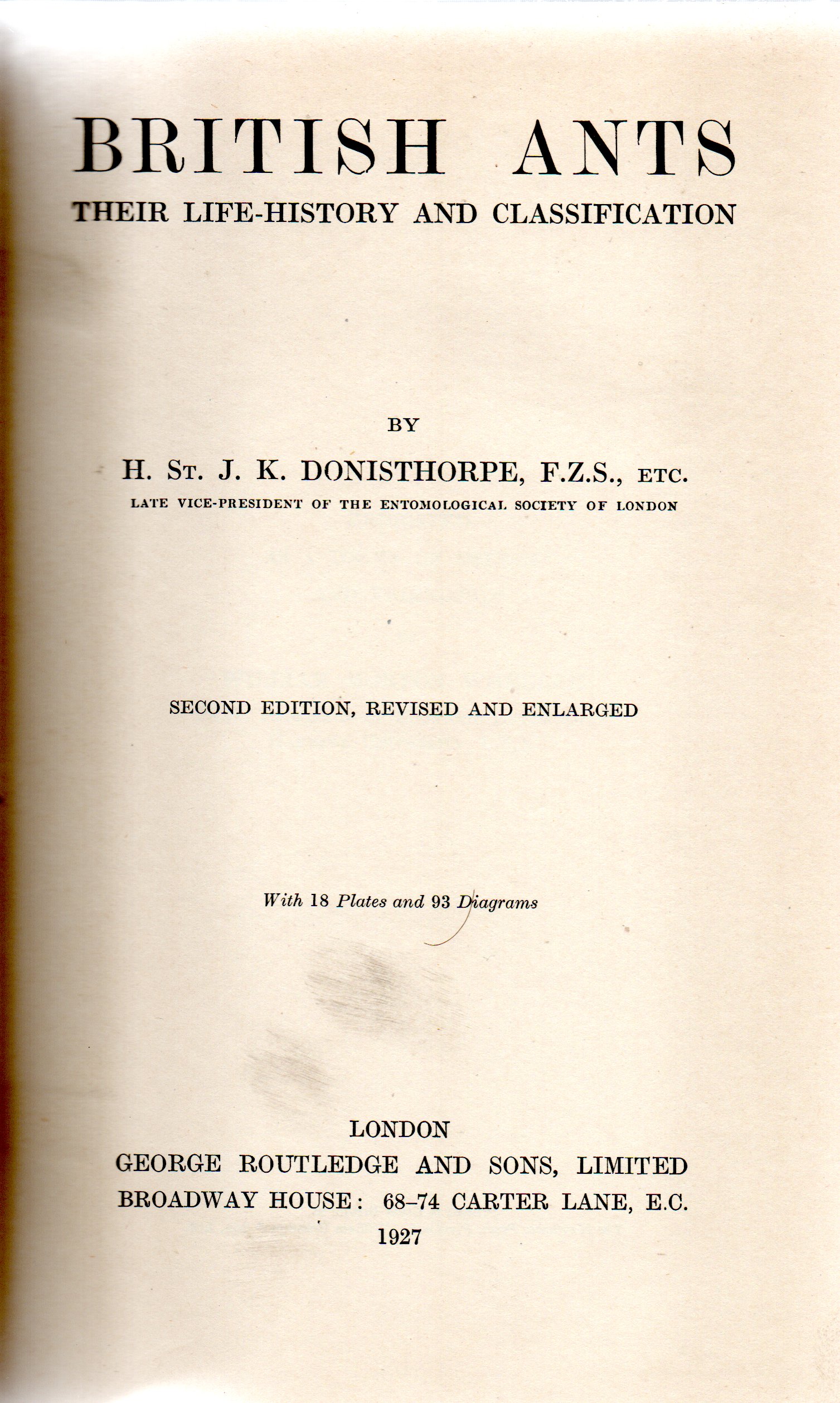 British ants. Their life-history and classification, par H.St.J.K. Donisthorpe, Geoges Routelge and Sons éd, Londres, 2ème édition (1927).