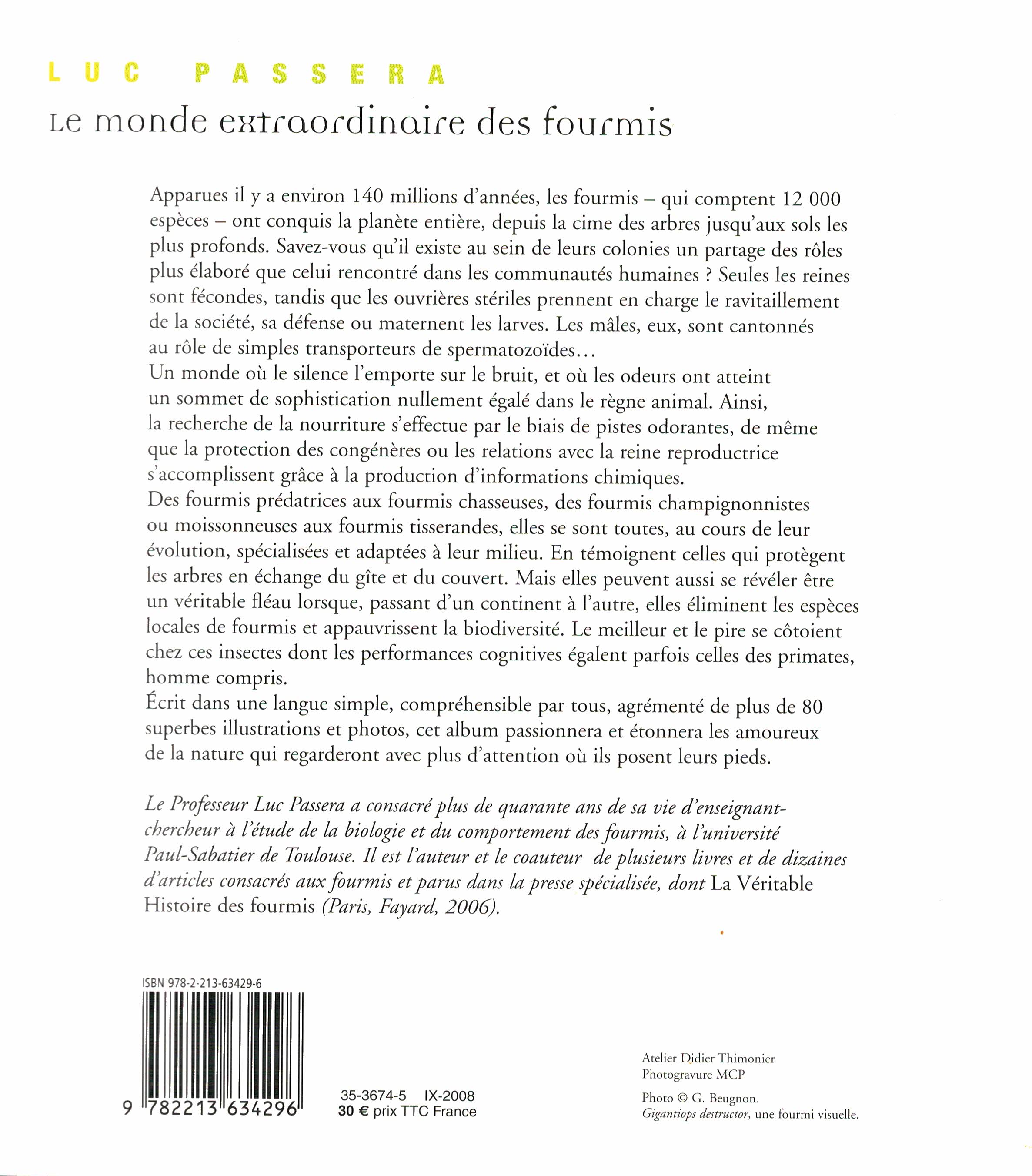 Le monde extraordinaire des fourmis, de Luc Passera , fayard 2008. Avec de belles photos