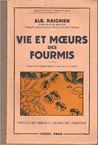 Une vraie mine avec de nombreuses observations. Selon Luc Passera "Ma première lecture sur les fourmis : le bouquin de Raignier "vie et moeurs des fourmis" de 1952, toujours dans ma bibliothèque ! " (mail 5 décembre 2017).