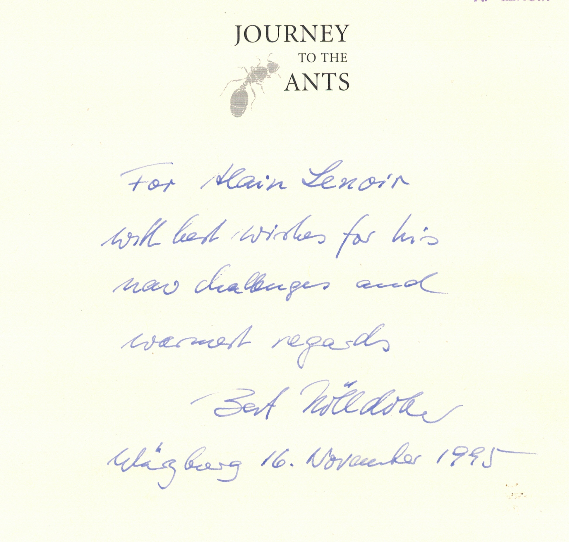 La dédicace du livre anglais à Alain Lenoir par Bert Hölldobler (1995)