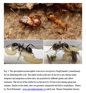 Lomechusa (= Atemeles) et Lomechusoides (= Lomechusa). Selon Rémy Chauvin, les loméchuses, coléoptères myrmécophiles, "ennivrent" leurs hôtes avec une secrétion. Voir Pdf