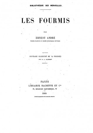 Species des hyménoptères d'Europe & d'Algérie. Rédigé d'après les principales collections, les mémoires les plus récents des auteurs et les communications des entomologistes spécialistes : T.2, Les fourmis, par Ernest André (Hachette 1885) (Pdf téléchargé du site Gallica)