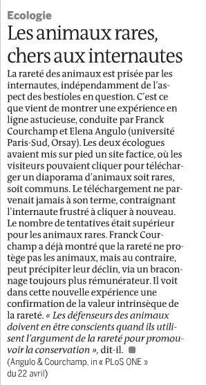 - Anonyme (2009). Les animaux rares chers aux internautes.