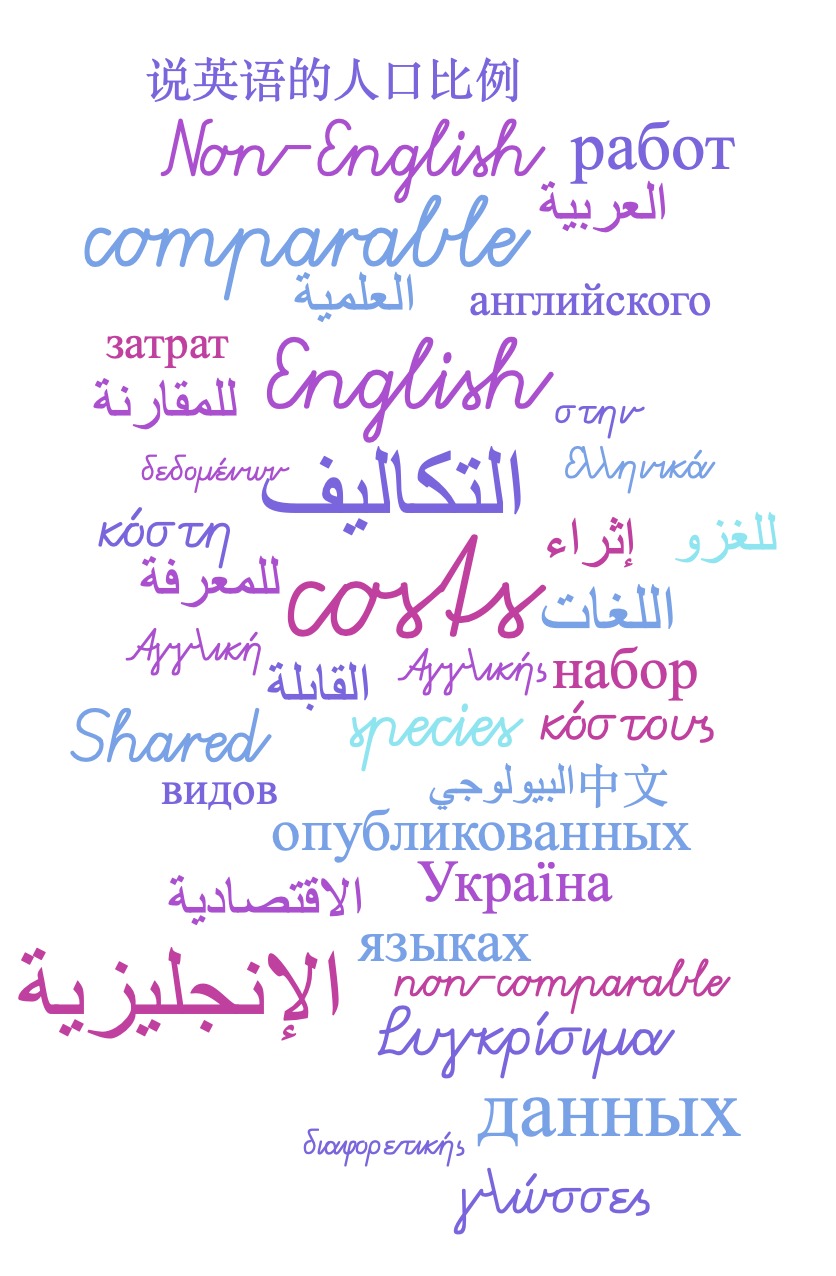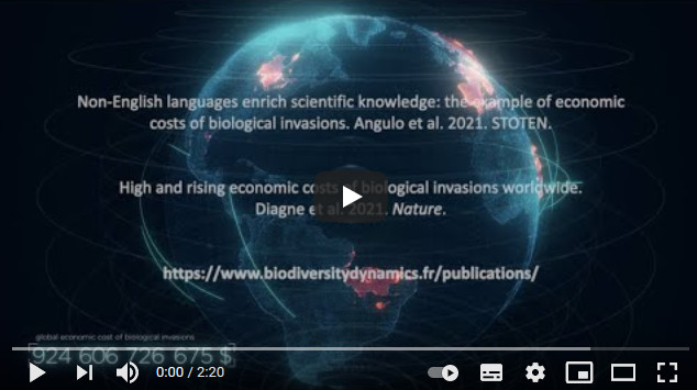 Gros travail sur le coût des invasions biologiques animé par Franck Courchamp publié dans Science of the Total Environment (Angulo et al 2021) sur la littérature dans 15 langues autres que l'anglais. C'est très impressionnant, il y encore plus de données (2550 vs 2306 pour les coûts), cela ajoute 249 espèces invasives et 15 pays non encore répertoriés, cela accroit le coût de 16,6%. La langue la plus utilisée est l'espagnol, le français ensuite, l'arabe pas du tout ! Il apparait que la littérature en anglais introduit des biais dans tous les domaines, par exemple le coût en Europe est très sous-évalué.