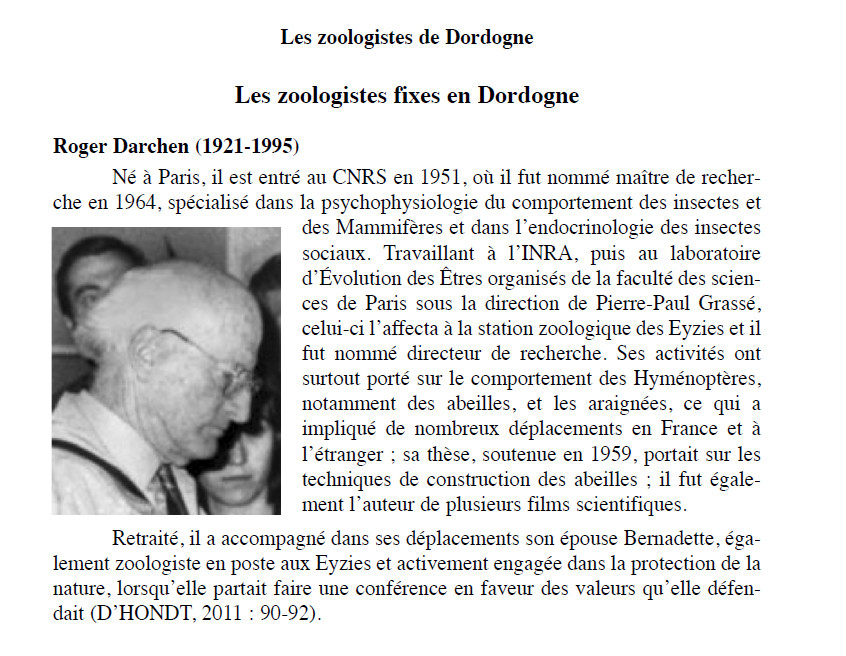 A fait le petit séminaire. Thèse avec P.P. Grassé. Maître de Recherches au CNRS. Co-directeur avec Bernadette Delage-Darchen, son épouse, de la station bilologique des Eyzies.