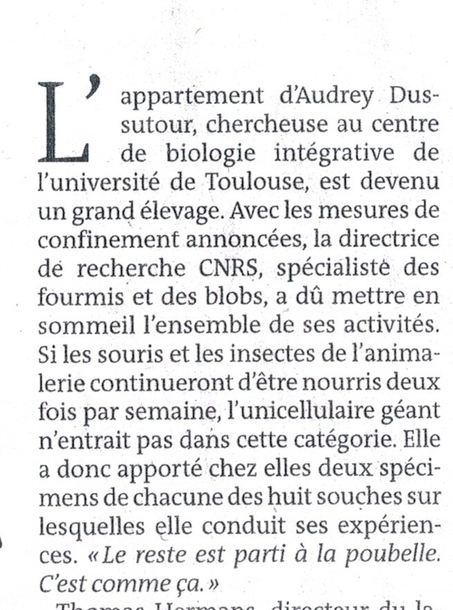 en juillet 2021. Audrey Dussutour est parvenue, en articulation avec ses travaux