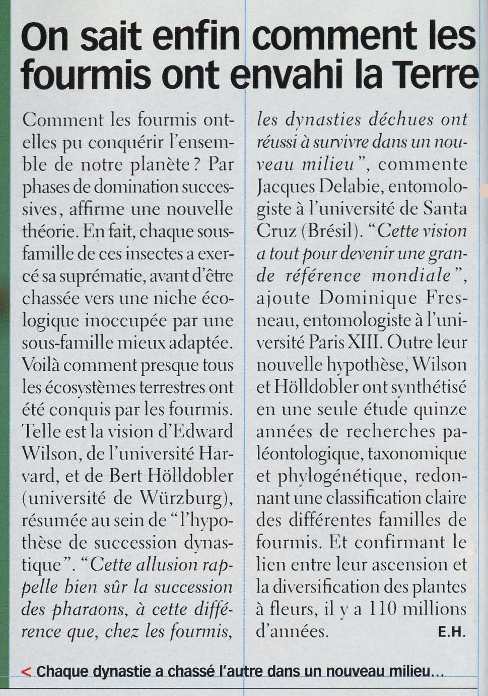 - On sait enfin comment les fourmis ont envahi la terre (origine