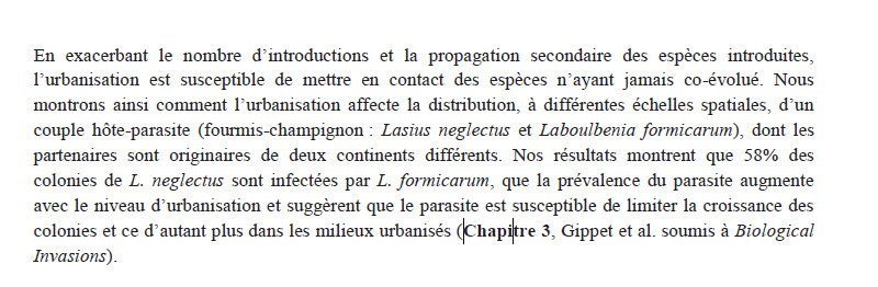 au climat (Chapitre 1, Gippet et al. 2016 Urban Ecosystems). Parce qu'ils concentrent